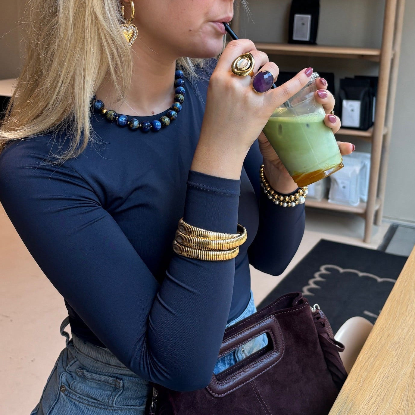 Hoe leuk is deze statement armband. De armband is elastisch en zit aan elkaar vast.