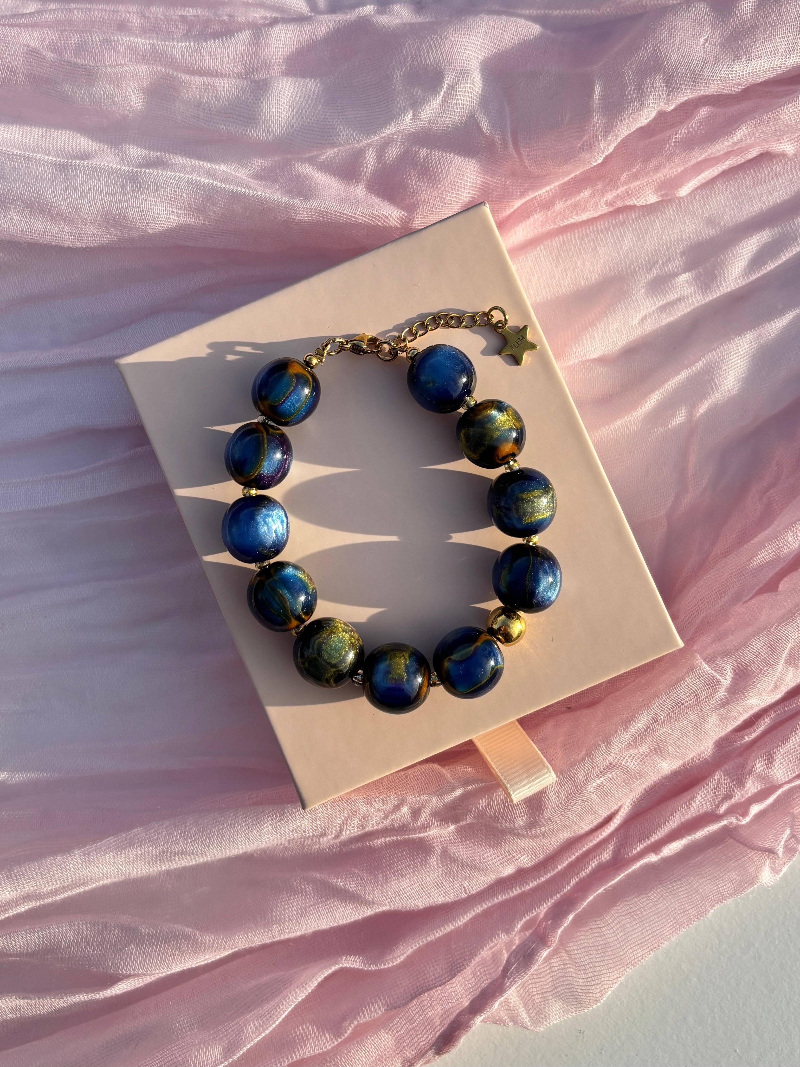 Hoe leuk is deze handgemaakte armband. Perfect om te combineren met andere armbanden! Iedere kraal is weer uniek en heeft een prachtige schittering! Een echte eye-catcher.