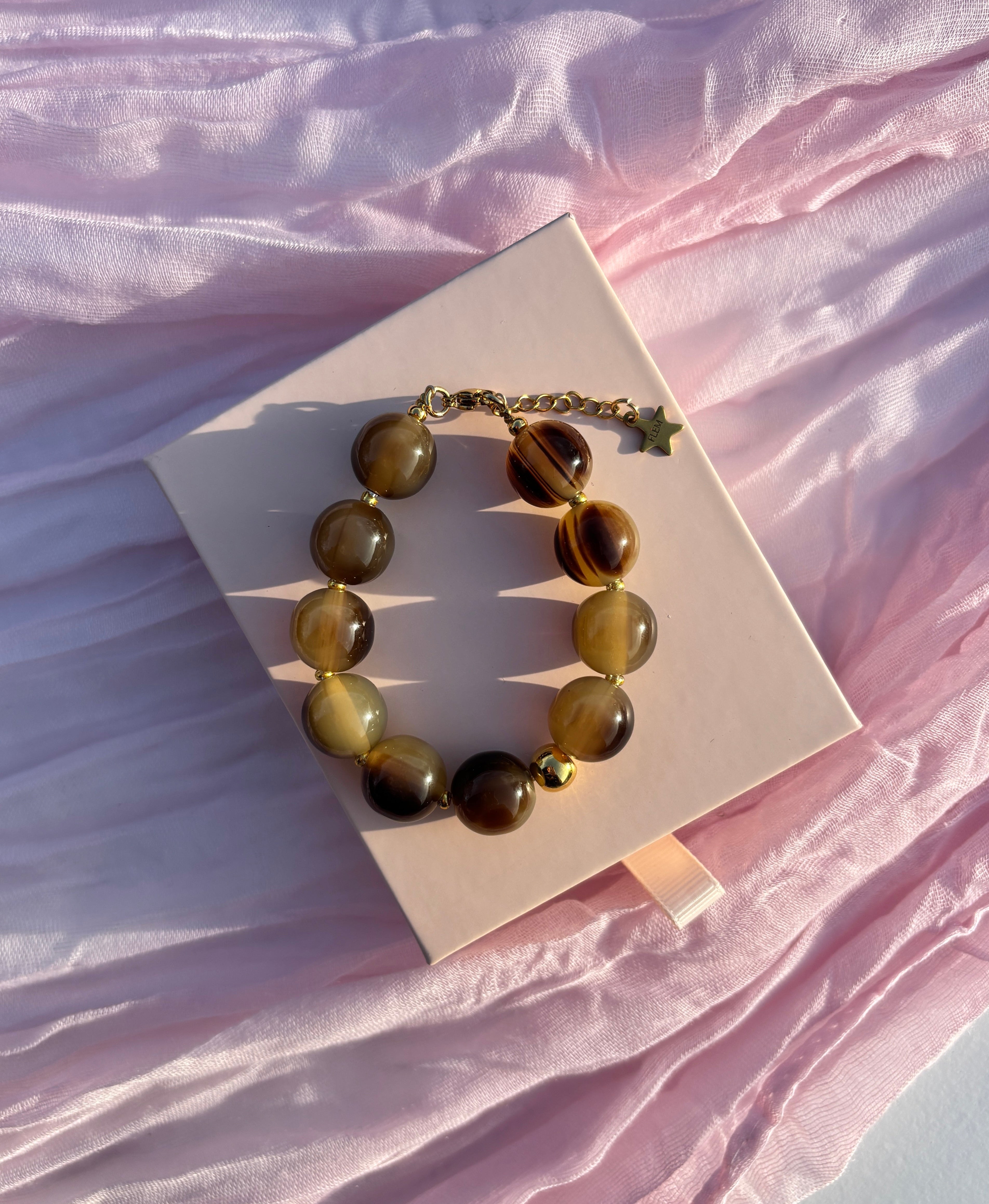 Hoe leuk is deze handgemaakte armband. Perfect om te combineren met andere armbanden! Iedere kraal is weer uniek en heeft een prachtige schittering! Een echte eye-catcher.