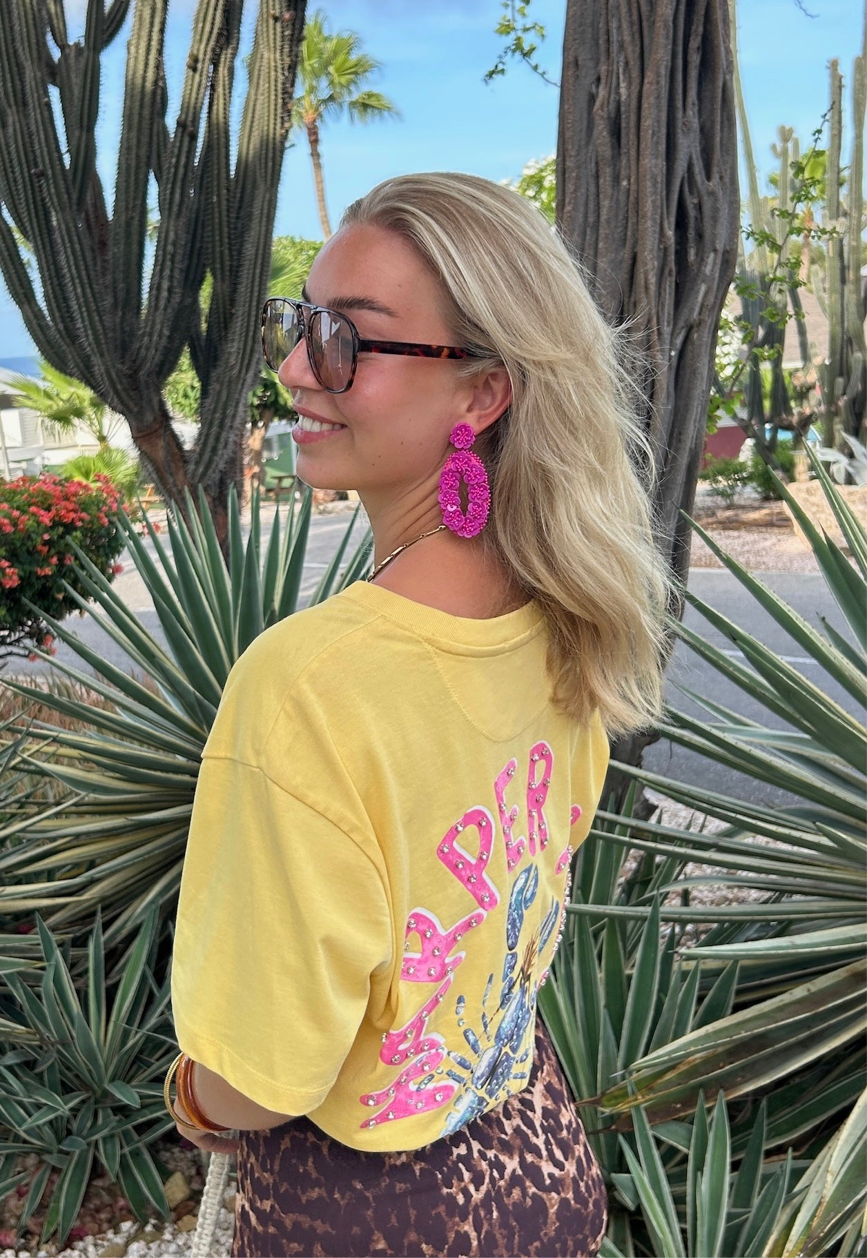 Deze roze oorbel is een echte eyecatcher!