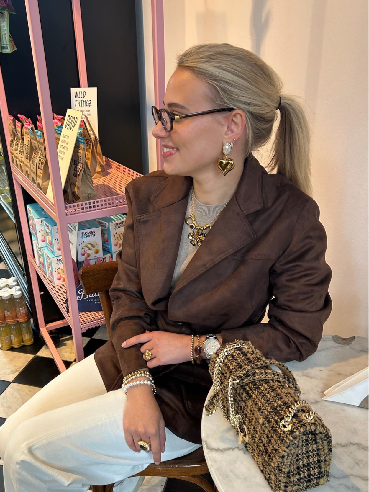 Hoe geweldig is deze gouden oorbel! De oorbel is door de combinatie van goud en parel een echte statement.
