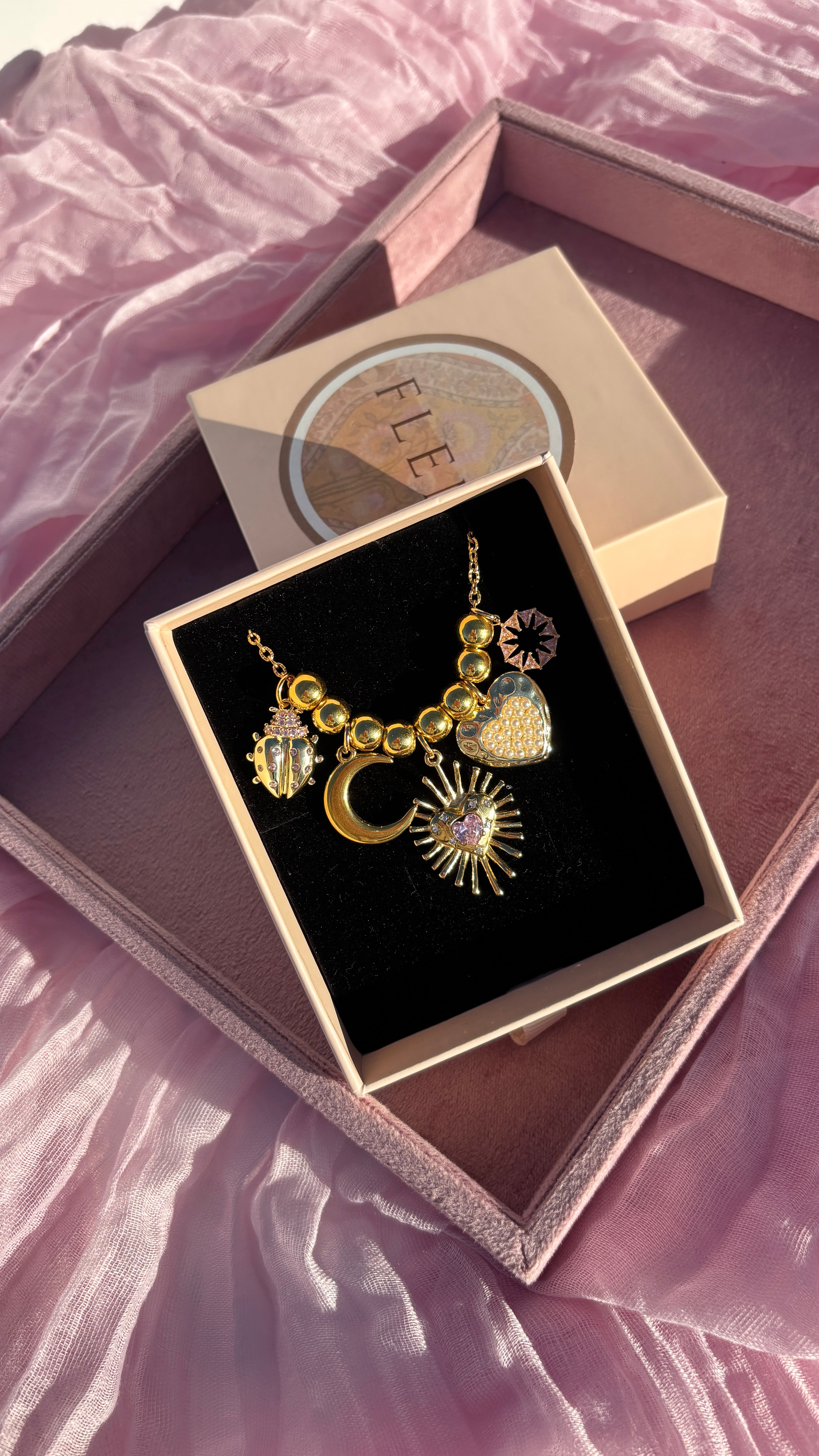 Deze bedelketting is toch amazing! De bedels zijn stainless steel en zijn eventueel te verwisselen. Deze ketting is handgemaakt en exclusief te verkrijgen bij Flem!