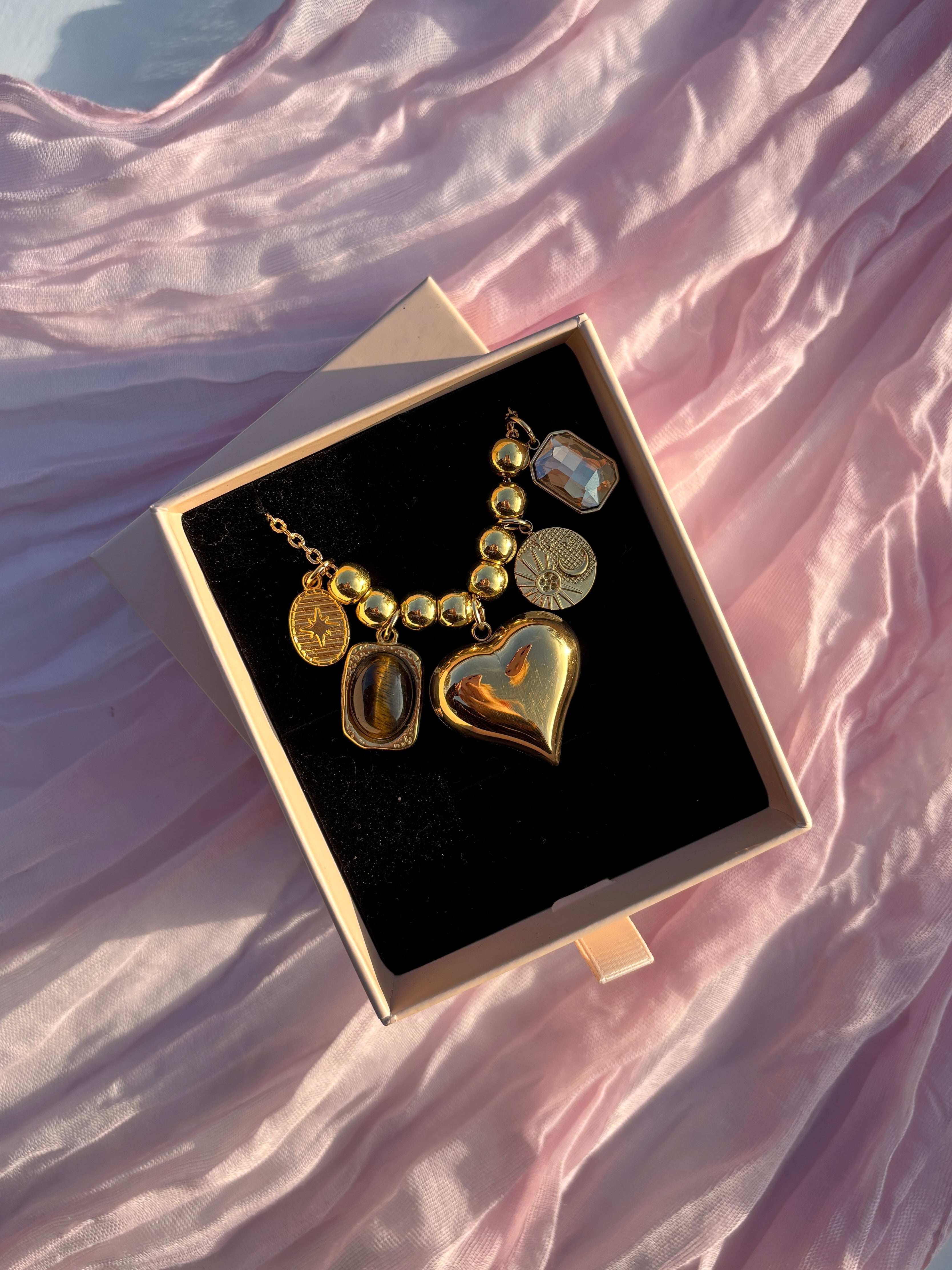 Deze bedelketting is toch amazing! De bedels zijn stainless steel en zijn eventueel te verwisselen. Deze ketting is handgemaakt en exclusief te verkrijgen bij Flem!
