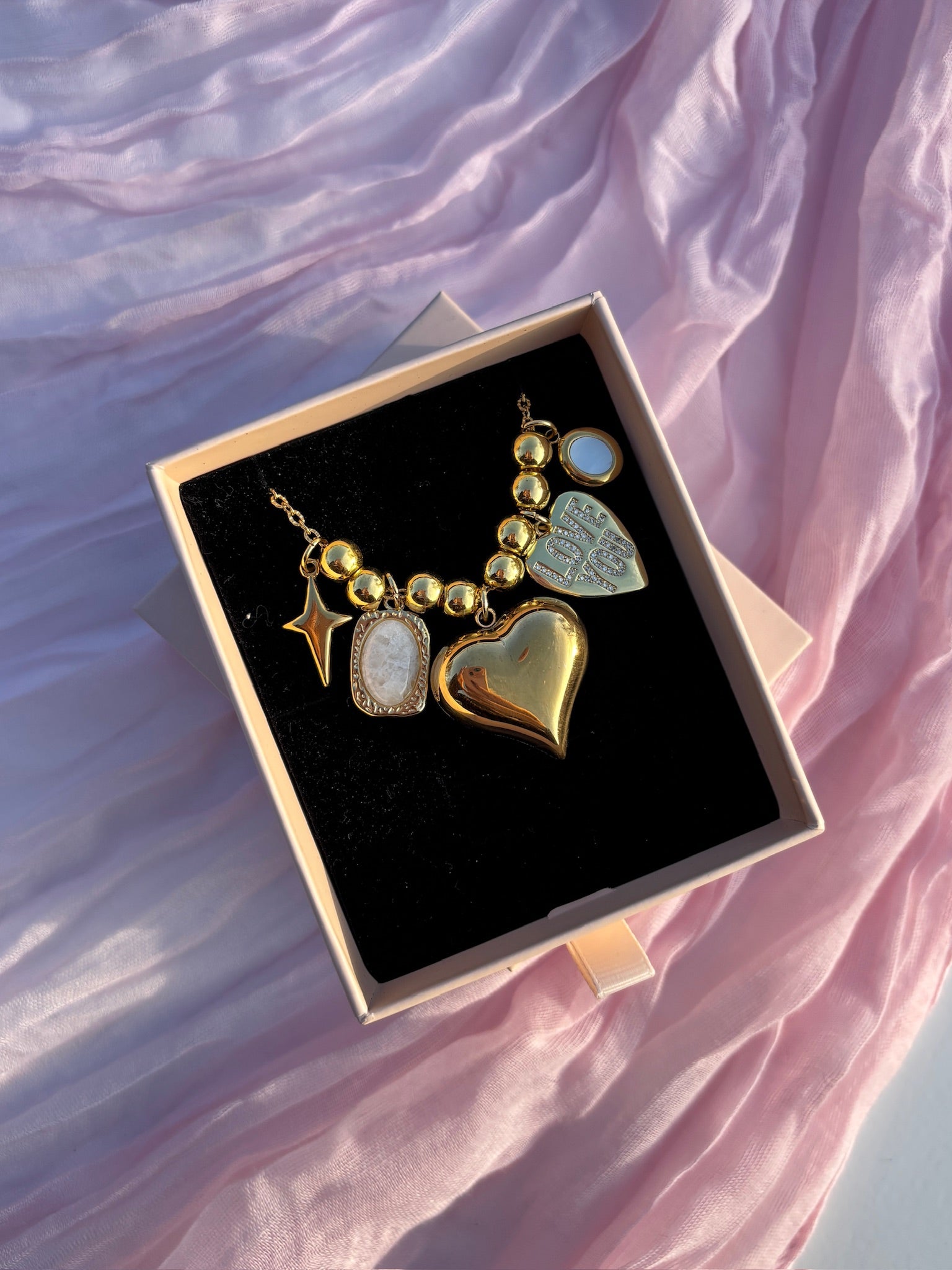 Deze bedelketting is toch amazing! De bedels zijn stainless steel en zijn eventueel te verwisselen. Deze ketting is handgemaakt en exclusief te verkrijgen bij Flem!