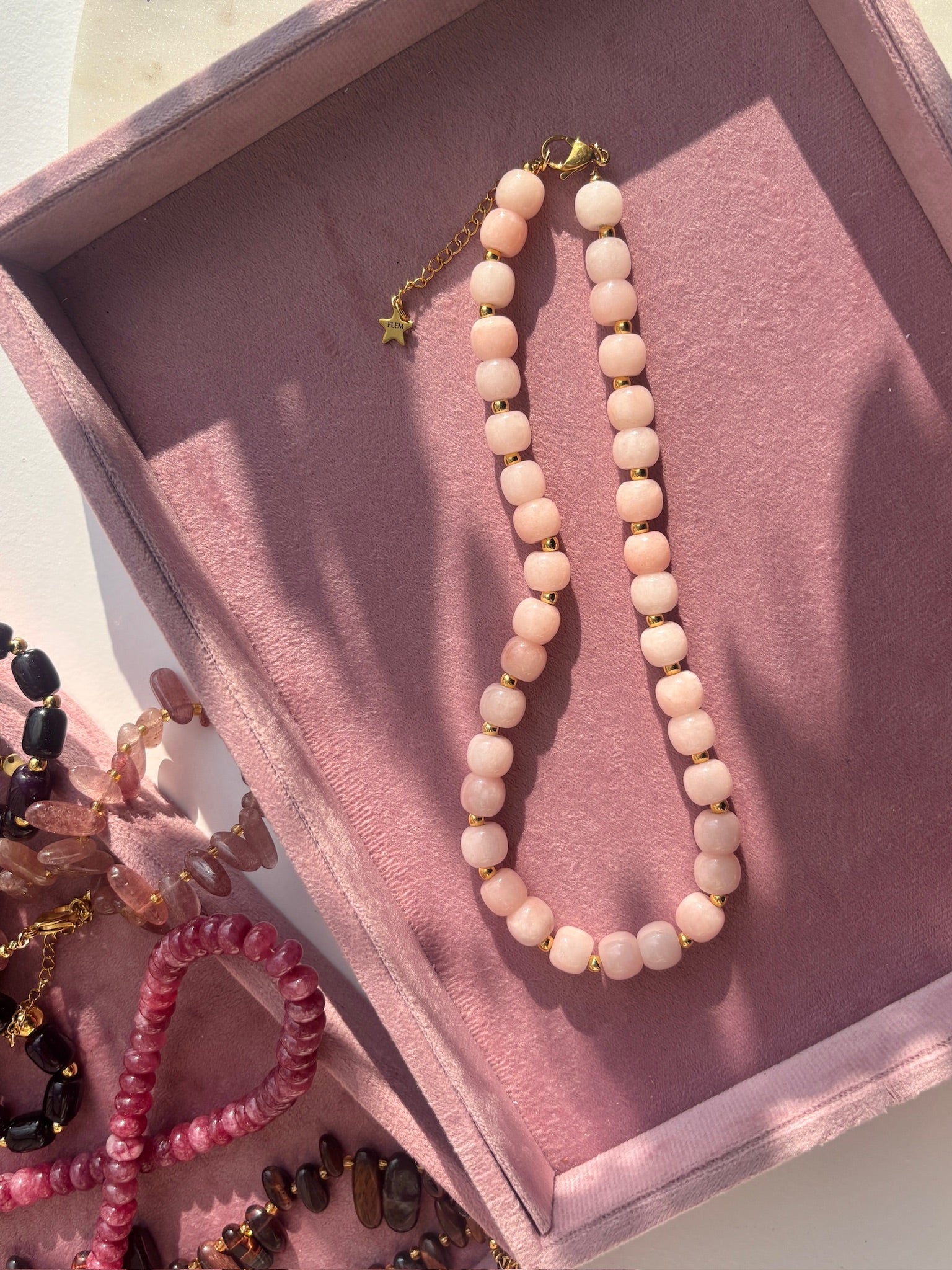 Deze ketting is toch amazing! De kleur is lichtroze en is zo makkelijk te combineren met verschillende kettingen maar ook outfits!