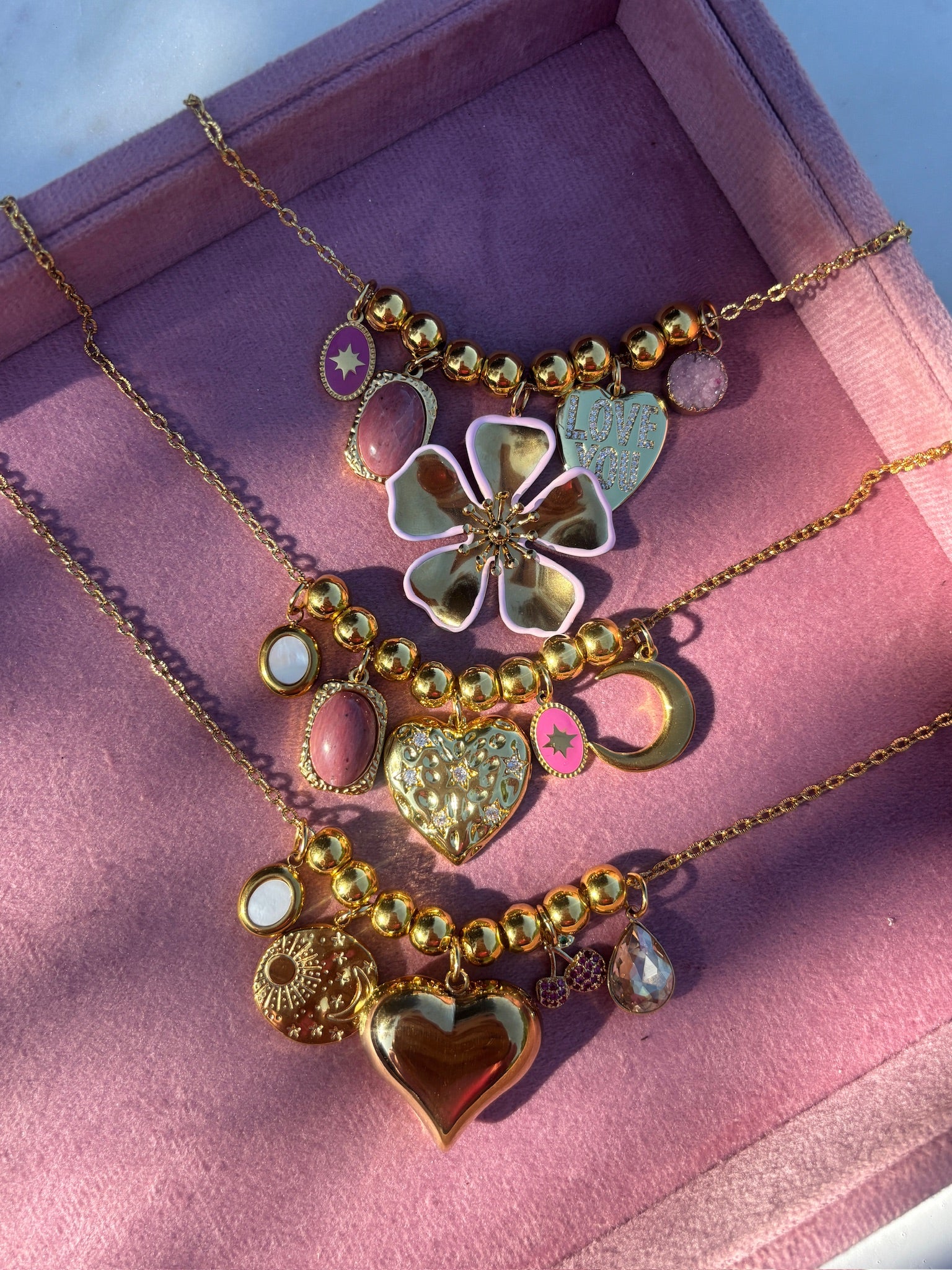 Deze bedelketting is toch amazing! De bedels zijn stainless steel en zijn eventueel te verwisselen. Deze ketting is handgemaakt en exclusief te verkrijgen bij Flem!
