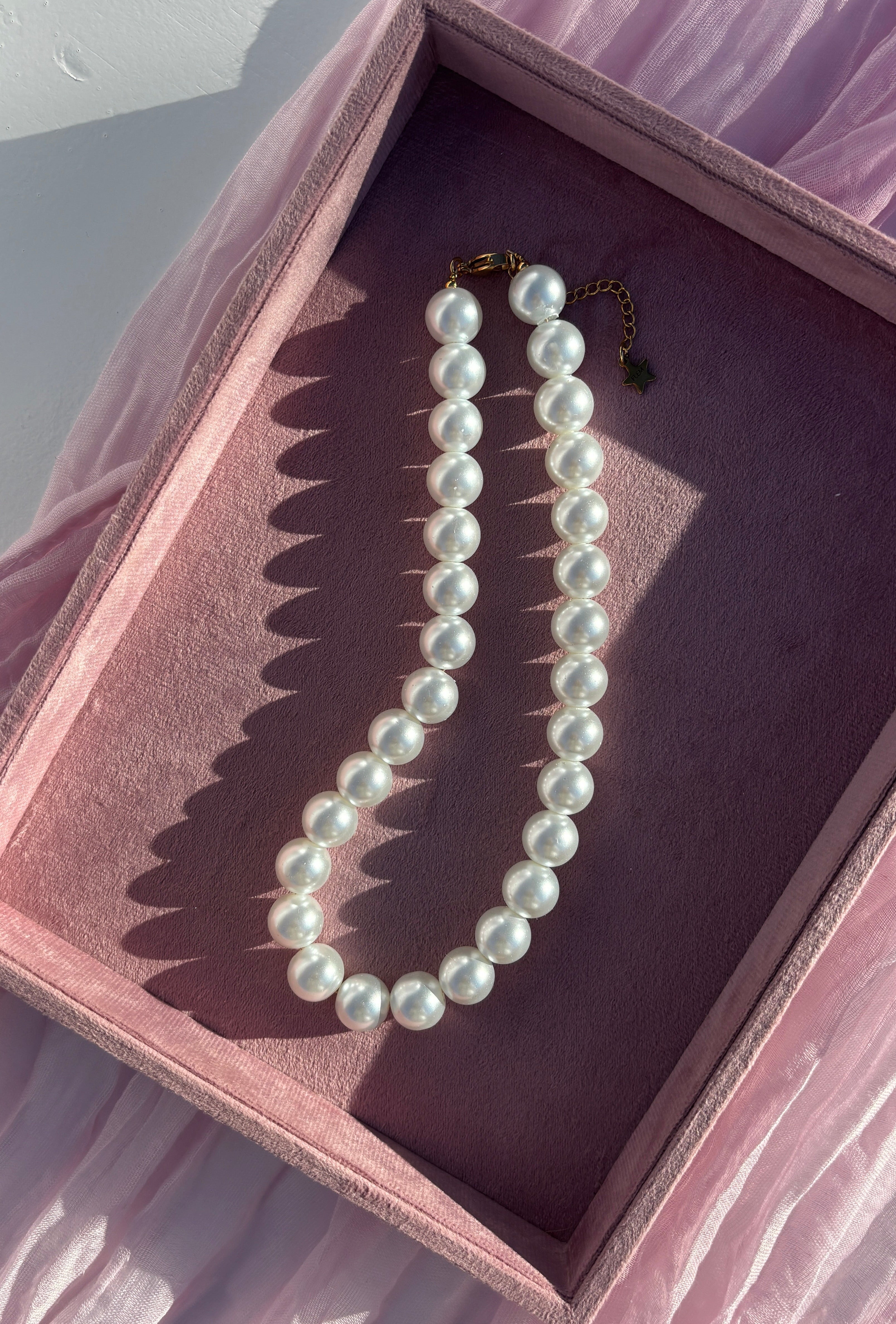 Deze prachtige parelketting is echt een statement. Een net iets dikkere kraal maakt jouw outfit helemaal af! Ook te leuk om te combineren met een van onze bedelkettingen!
