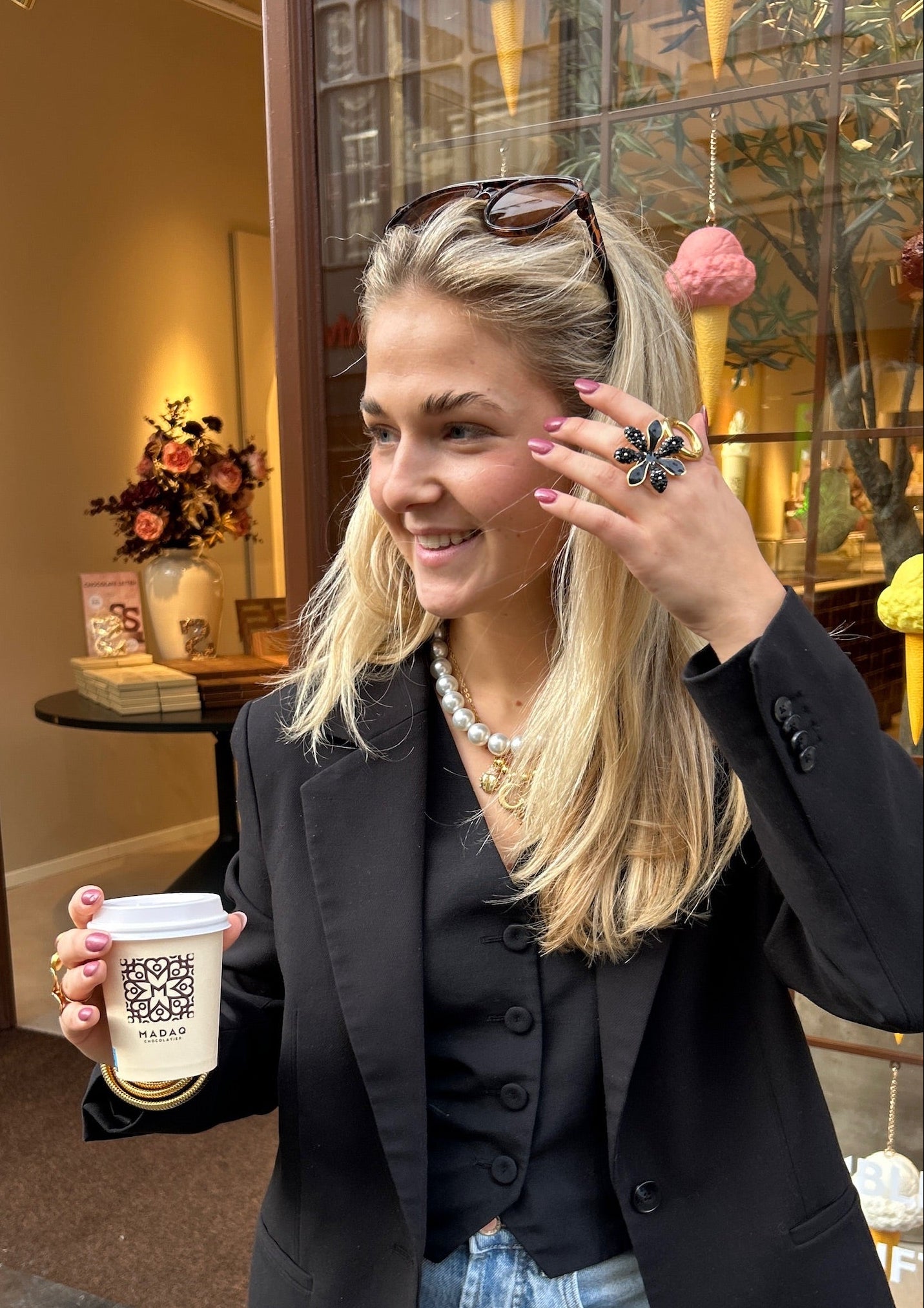 Deze prachtige ring is een uniek en elegant statement-item. Het gaat hierbij om de zwarte ring!