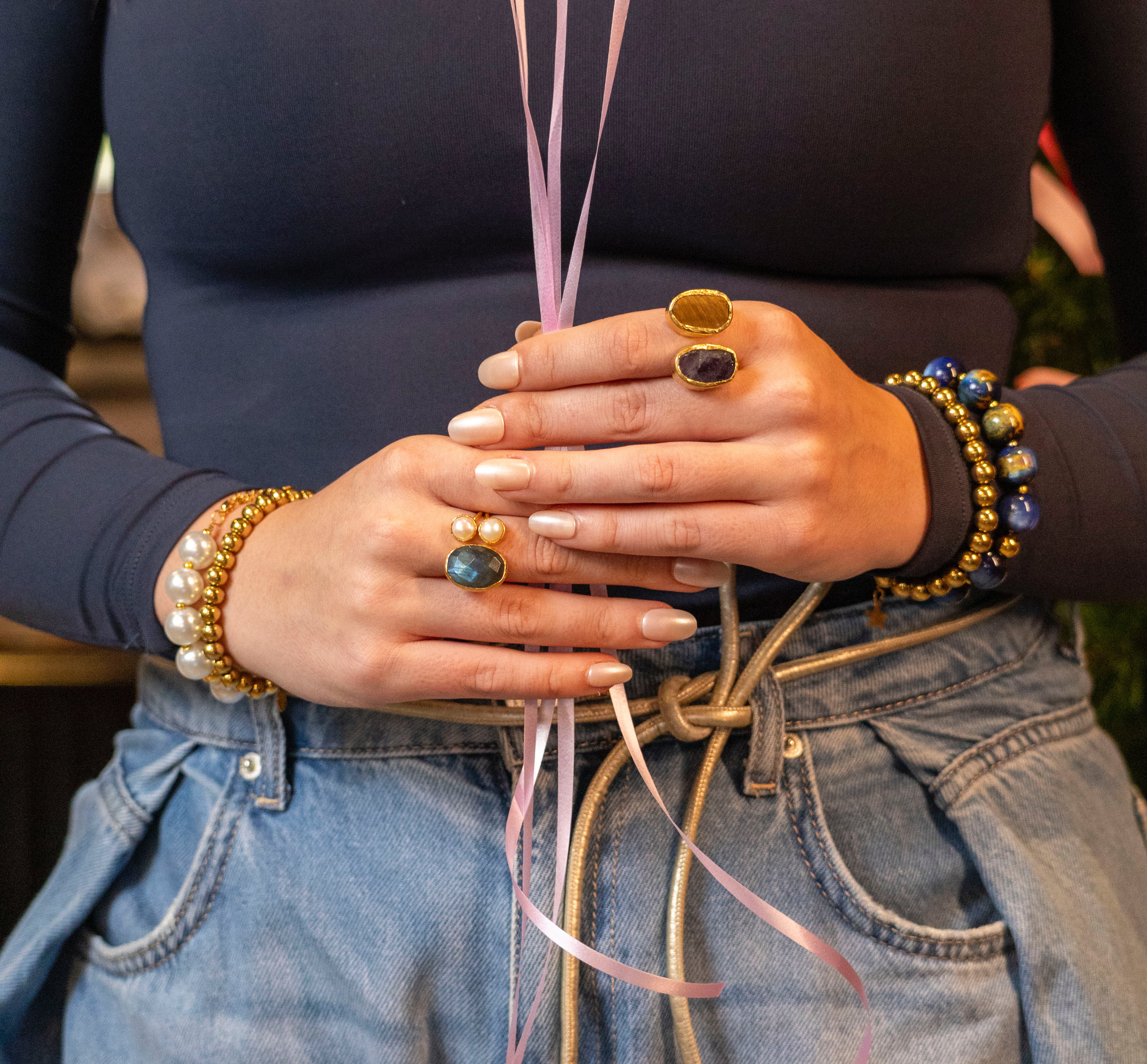 Hoe gaaf zijn deze ringen! Ze zijn van brons en natuursteen gemaakt. De ring is met een hele fijne sluiting aan de achterkant te verstellen naar je eigen maat, zonder dat hij open is. De ringen verkleuren niet, maar kunnen wel afgeven. Let hierdoor op bij het handen wassen! Het gaat hierbij om de roze ring met parels.